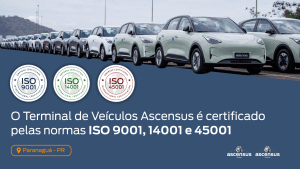 O Terminal de Veículos Ascensus no Porto de Paranaguá foi certificado pelas ISO’s 9001, 14001 e 45001!