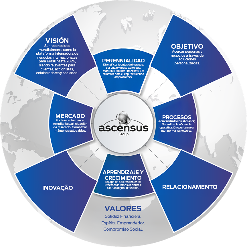 Ser reconocida mundialmente como la plataforma integradora de negocios internacionales en Brasil hasta 2026, siendo relevante para clientes, accionistas, empleados y la sociedad.